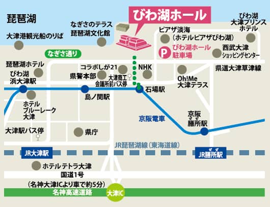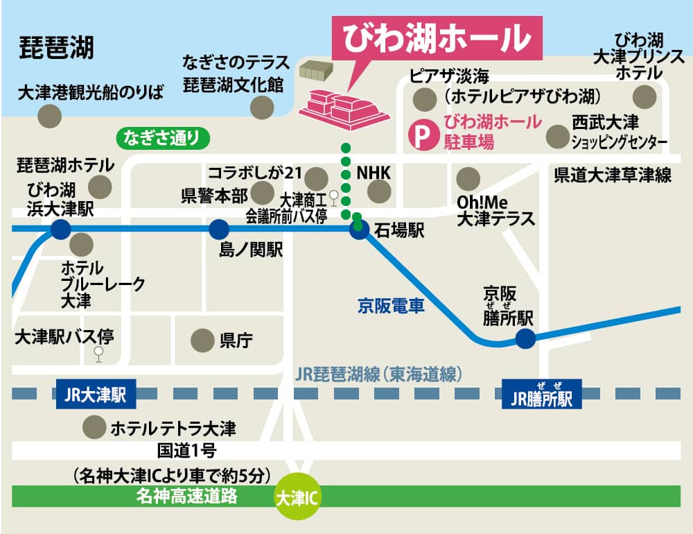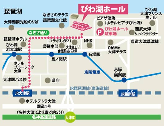 JR大津駅からの詳しいアクセス(バスで約5~7分、徒歩のみで約20分)