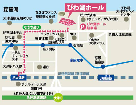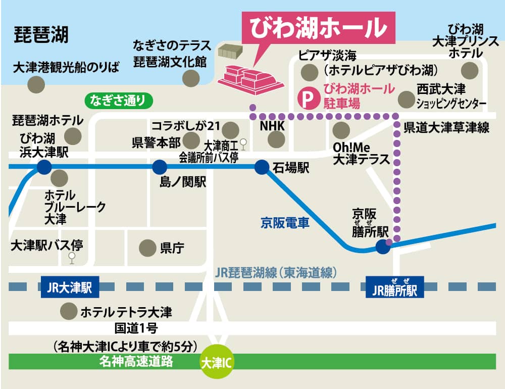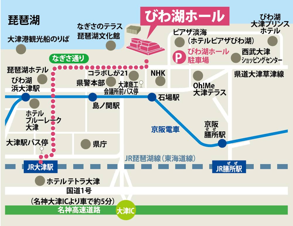JR大津駅からの詳しいアクセス(バスで約5~7分、徒歩のみで約20分)